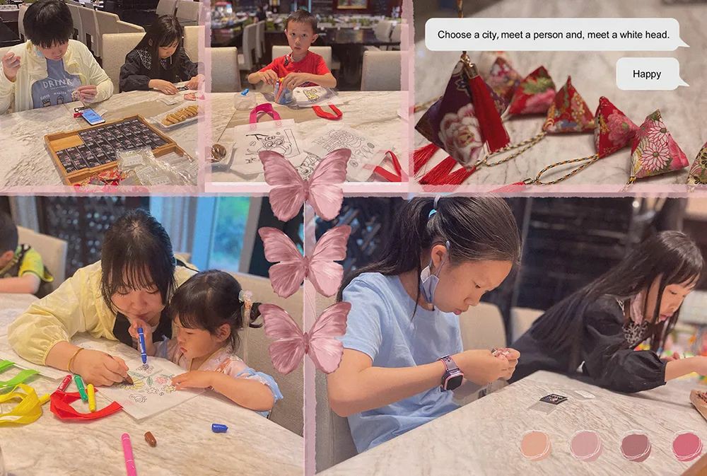 在这里,多款妙趣横生的DIY小活动如手工香囊、七彩环保袋涂色等让现场气氛快乐无比,欢声笑语不断,更有萌娃们喜爱的烧烤、海鲜、冰淇淋、棉花糖、蛋糕等等色香味俱全的童趣美食。