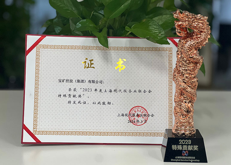 在授牌颁证仪式上,宝矿控股(集团)有限公司荣获“2023年度上海现代服务业联合会特殊贡献奖”。
