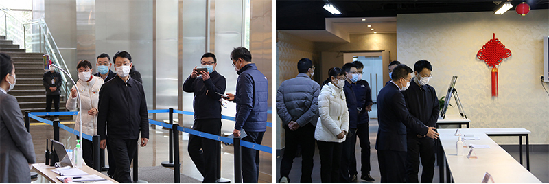 于部长首先来到大堂接受测温,并检查疫情防控措施的落实情况。他十分关心企业复工情况,详细了解了复工企业所属行业、复工人数以及错时错峰的具体安排。之后于部长来到位于大楼36层的新湖期货公司检查和指导疫情防控工作。最后,于部长一行来到五楼员工食堂。当他听了在疫情期间,宝矿公司内部员工食堂为更好服务于楼宇客户,主动开放,采用预约、盒饭方式,减少聚集用餐的做法表示充分肯定。